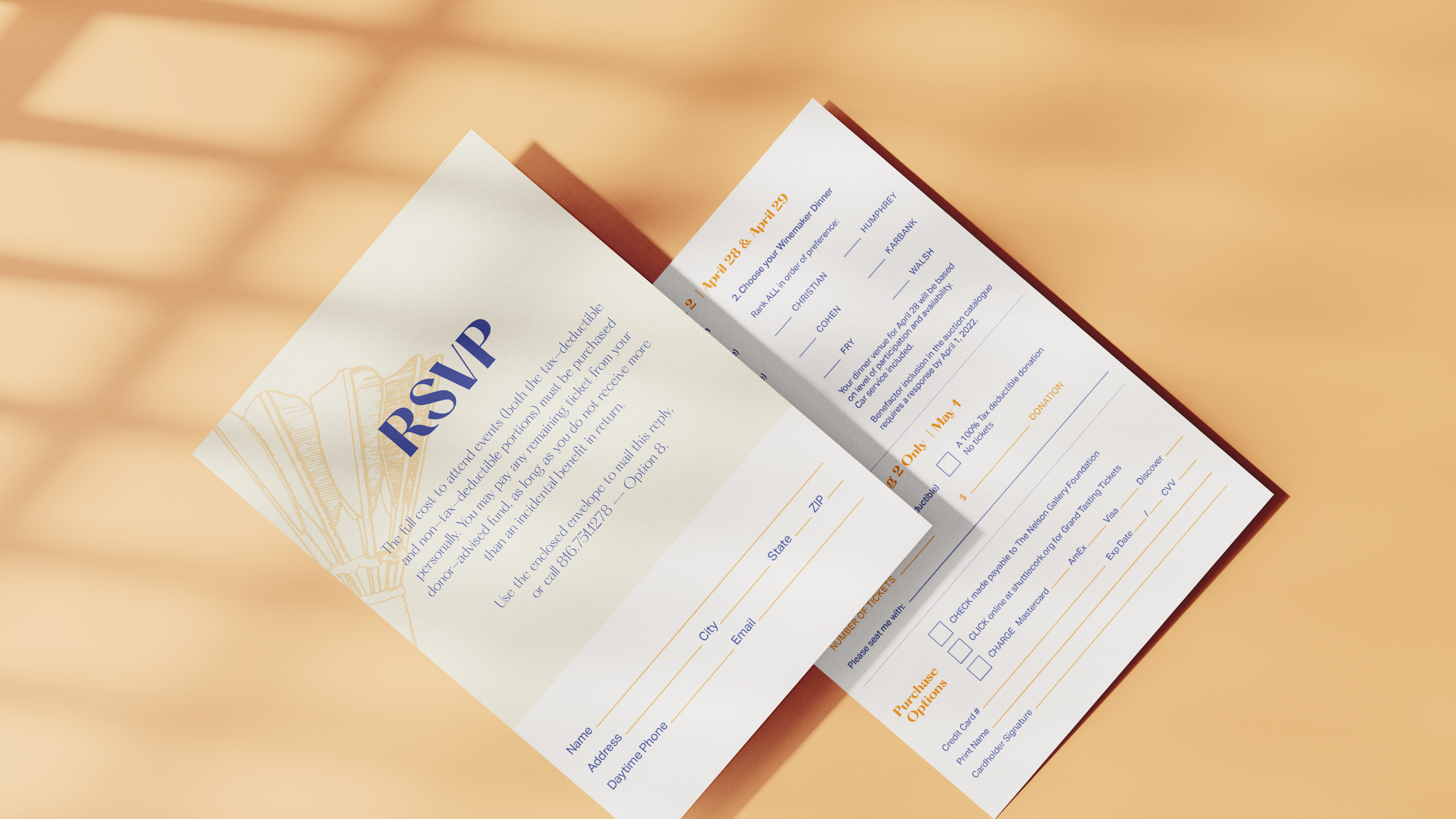 The ShuttleCork event is an annual auction and gala hosted by the Nelson-Atkins Museum of Art. DMH was approached to create the branding and print collateral for the 2022 event. Our team worked together to concept a unique mark and aid the Nelson-Atkin’s team to create multiple touch points and branding for the event.